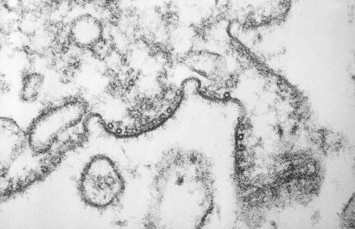 尼帕病毒透射电子显微镜照片,显示病毒颗粒结构